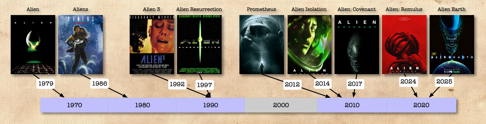 Med Alien Earth ute så behövs en timeline över de filmerna som är ute och när dom händer i tid, så här kommer det!