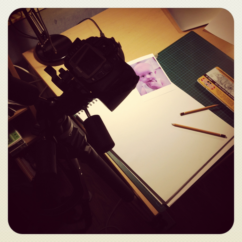 Även den här gången gjorde jag en timelapse på det hela. Det funkade lite bättre nu, använde Apples egna Image Capture för att ta en bild varannan sekund, tycker det blev bättre faktiskt. Men timelapsen blir på sidan, för det funkar helt enkelt bäst så tills dess jag fixat ett bättre stativ. Kolla på bilden till höger så ser ni att det inte direkt är optimal arbetsställning. Nåja, håll till godo.