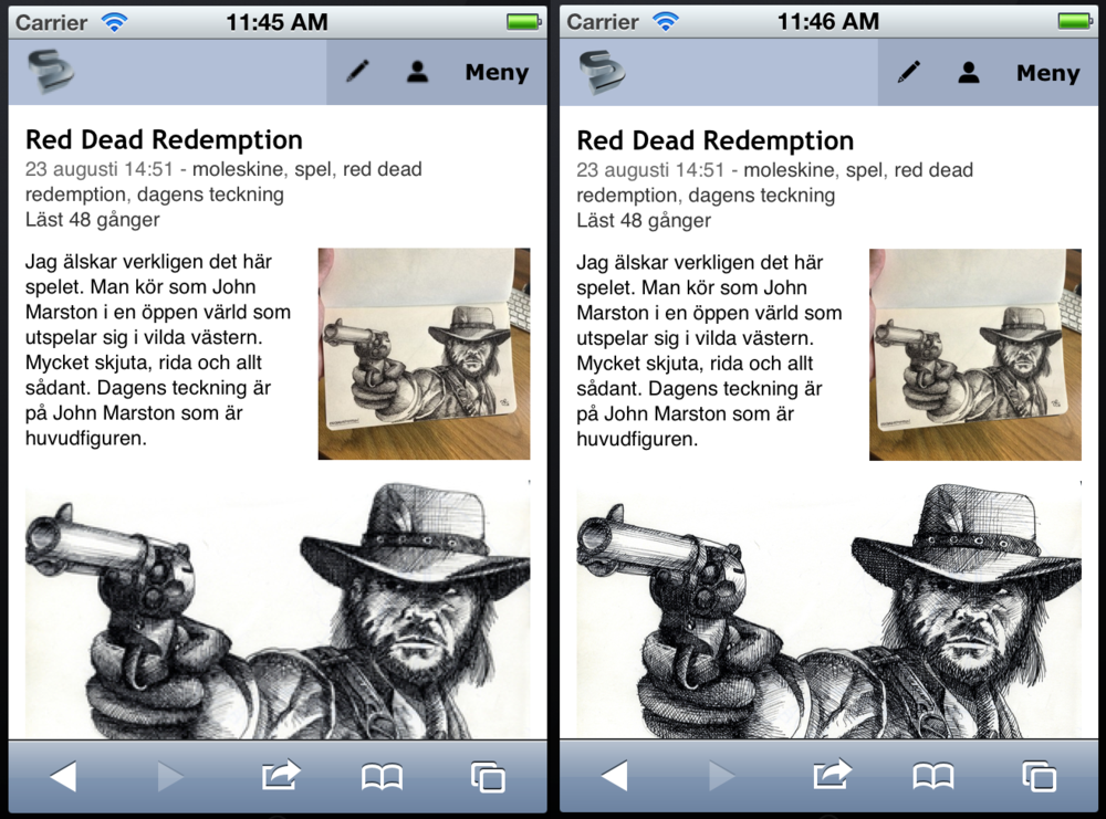 Här är ett exempel på skillnaden. På bilden till vänster så ser nu hur Atlas hanterade detta innan. All text är väldigt skarp, men bilderna är suddiga och pixliga eftersom dom ritas upp i halva upplösningen av skärmen. Bilden till höger är som det fungerar nu. Skarpa och tydliga bilder och ikoner ger helt klart ett mycket proffsigare intryck.