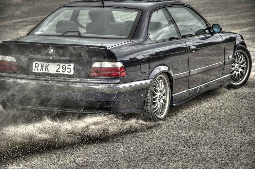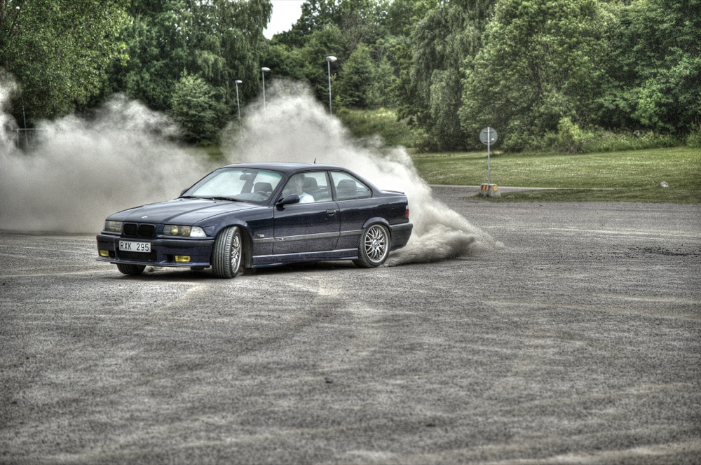Efteråt så åkte jag och en kompis ut till en grusplan och sladdade lite med hans BMW, blev ett par bilder på det med. Skoj som tusan!
