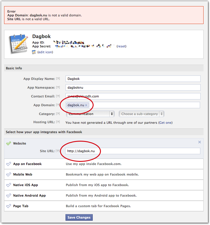 But when I go to create a Facebook app for it - to allow for Facebook login on it, all I get are errors, it claims that the URL isn't valid.