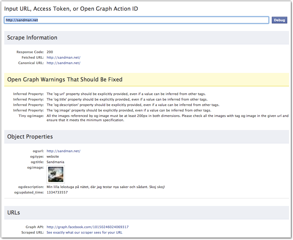 So what's the problem? Facebook has this nice function for developers to see what their scraper sees