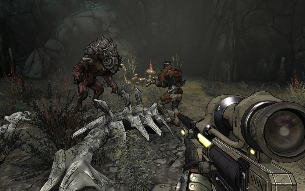 Den grafiska stilen i spelet är väl egentligen det mest anmärkningsvärda, som går i en skön cel-shadad (eller hur tusan man nu böjer det där ordet) stil, det vill säga att det ser mer eller mindre tecknat ut. De som kört Sly Racoon känner igen stilen, även om de gråbruna Mad Max-influenserna i Borderlands är ett rätt stort steg bort från Sucker Punchs sluga tvättbjörn.
