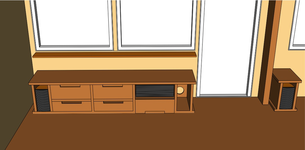 Så det blir så här istället. Jag ska bygga en ny möbel som har plats för all elektronik samt de nya högtalarna (som var mycket större än de gamla). Men ingen TV. Renare intryck förstås, smidigare och så.