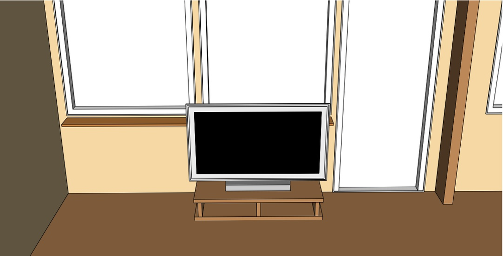 Så, i och med att vi renoverar köket så är man ju liksom i "fixar"-tagen och en nagel i ögat har länge varit TV'ns position (ja men hur skriver man "tevens" då?). Egentligen är det ju faktiskt TIna som inte gillar hur den står just nu. Jag tycker att den är lite felvänd gentemot soffan bara. Tina gillar inte att den sticker upp över blombrädan och skymmer fönstret lite grann. Det kan jag förstå så jag har jobbat på en lösning för detta, för jag vill inte byta ned mig till en mindre TV. Hehe.