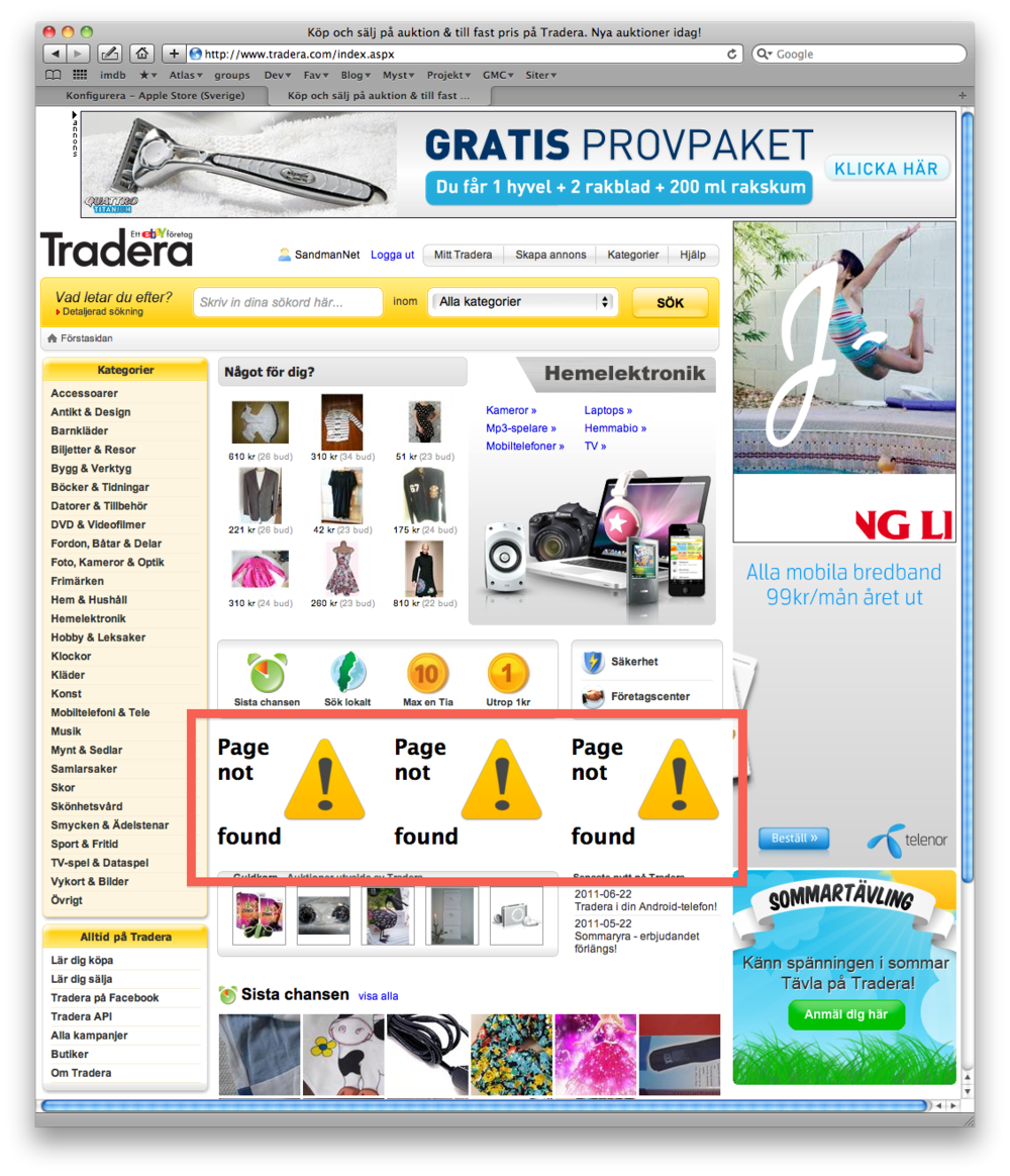 It's not unusual that someone copies something design-wise from sandman.net, but this is the first time I've seen a big company like eBay do it. So, what's all this about? Well, when I visited tradera.se (which is owned by eBay), I saw this: