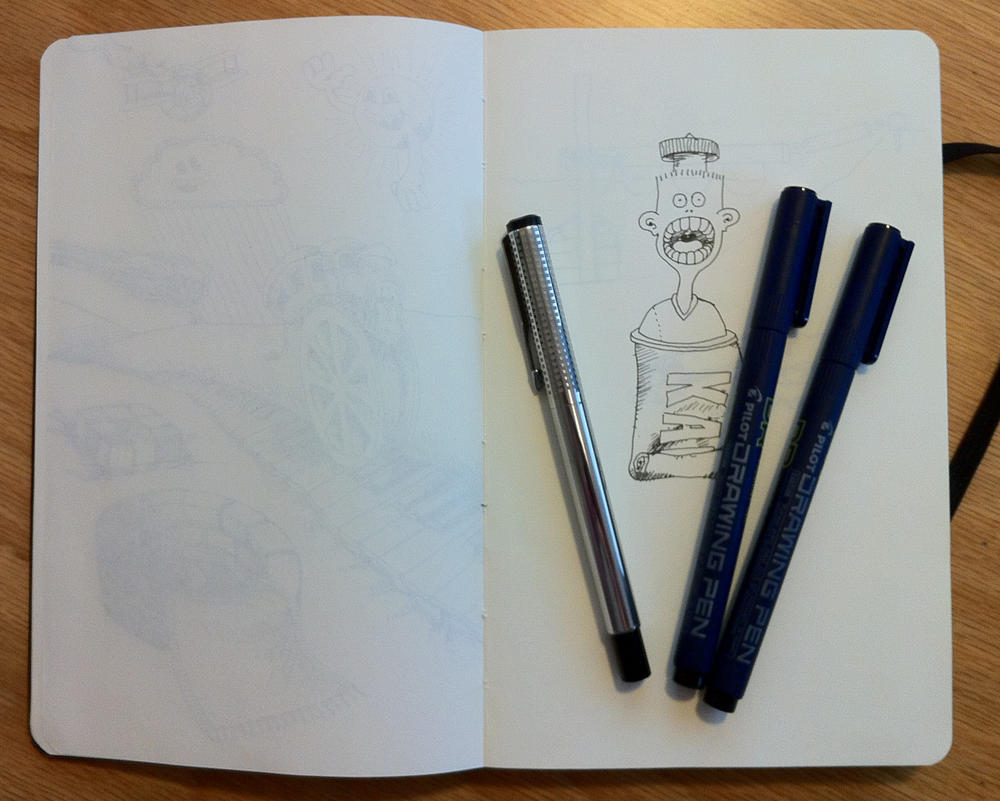 De två andra pennorna är två stycken Pilot Drawing Pen med en 0.1 och en 0.2 udd respektive med pigmentbläck. Dom är väldigt tunna, blöder inte och ger väldigt hög precision. Två tjocklekar betyder att dom fungerar till konturarbete likväl som detaljarbete.