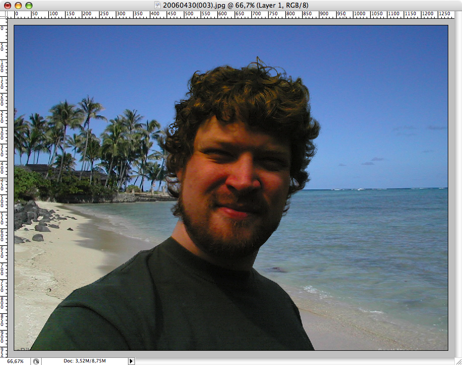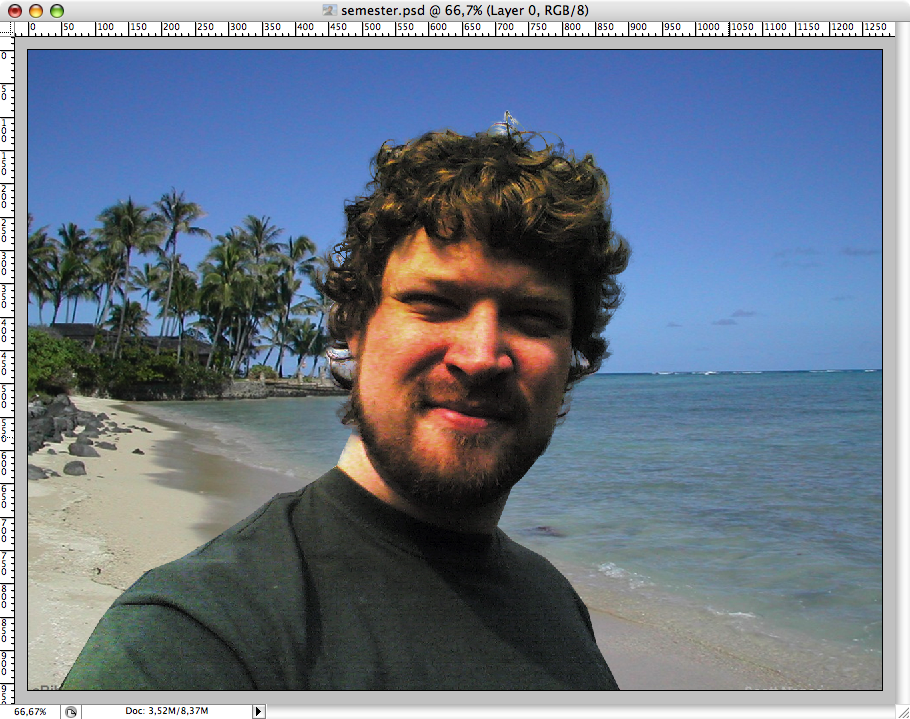 Se där - helt tranparent och vi har nu skurit ut oss själva ur bakgrunden. Nu måste vi ha en ny bakgrund! Google Images är ju ett bra ställe att börja på och att söka efter stora bilder som matchar "hawaii beach" fick fram en del trevliga förslag.