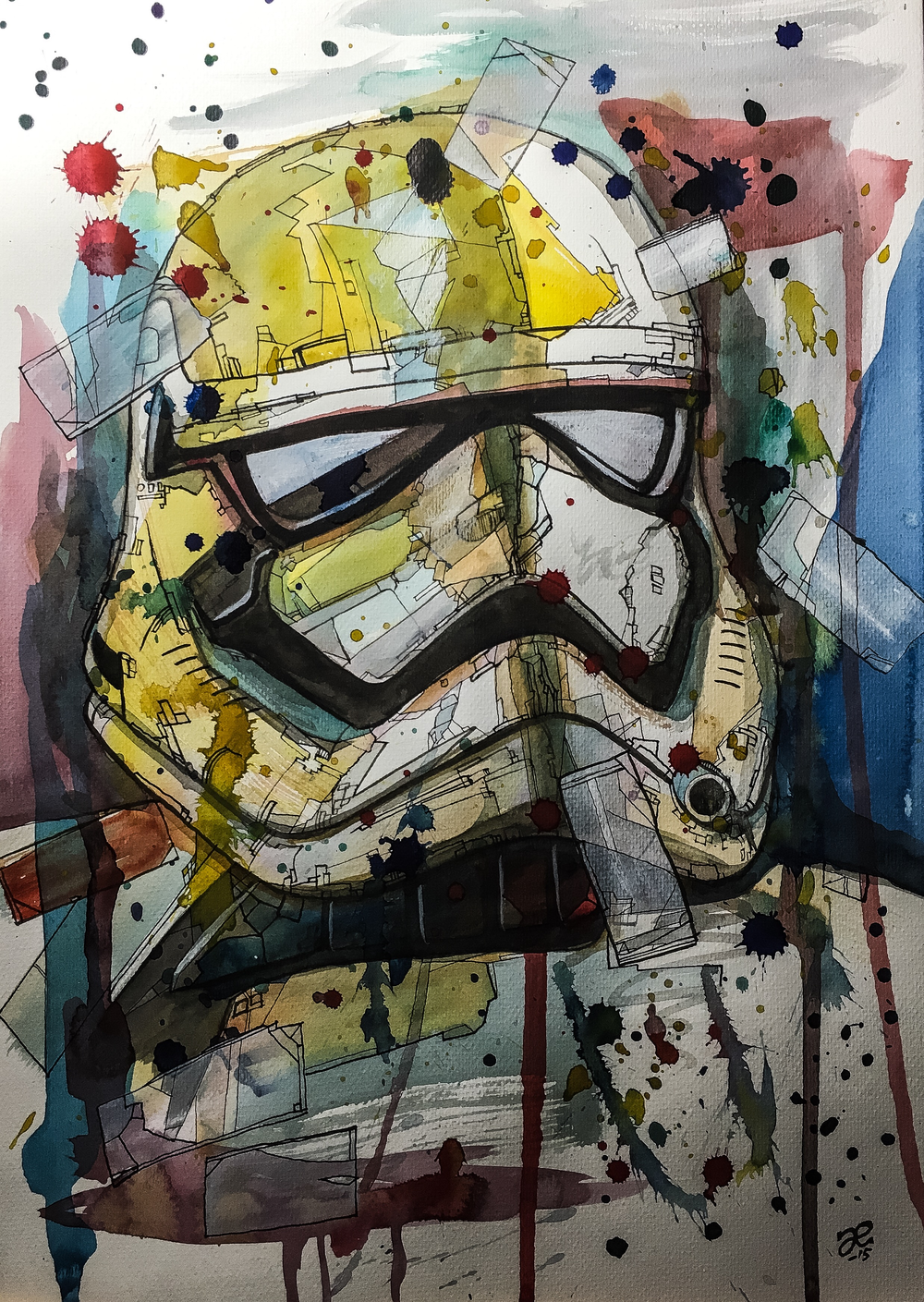 Här är en A3-tavla jag gjorde med den nya Storm Troopern från filmen. Gillar designen på hjälmen faktiskt, känns väldigt "Star Wars". Den är målad med akvarell på akvarellpapper.