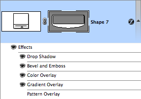 Tänk på att alla Shape Layers är vita när du klistrat in dem, använd Color Overlay och Gradient overlay för att skapa färgövergångar på objekten. Tänk också på att Color Overlay täcker Gradient overlay, så du måste sänka opaciteten på Color Overlay för att Gradient ska synas. Laborera mera.
