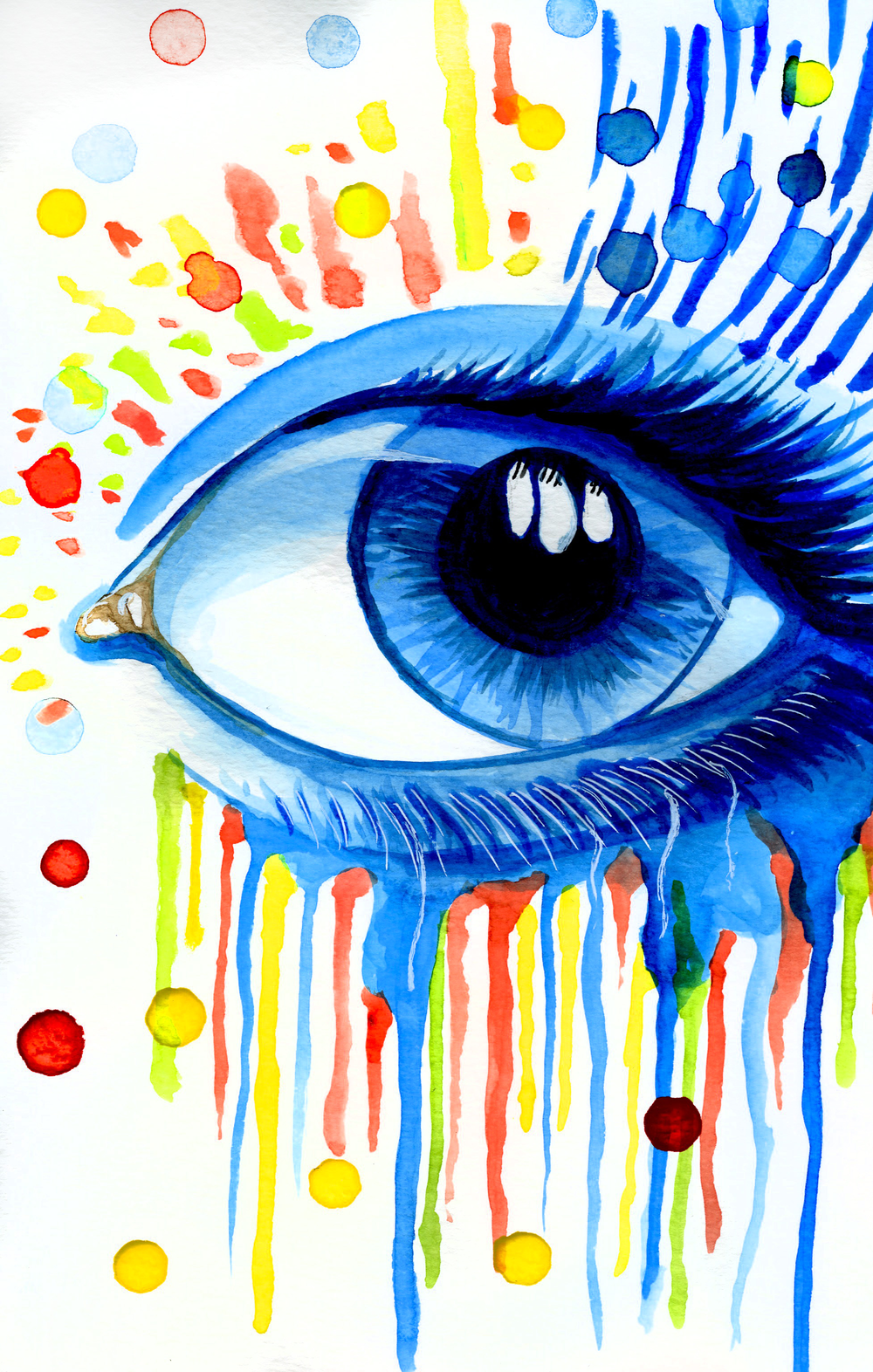 Jag har alltid gillat ögon, och så här i efterhand tror jag att det här ögat representerar syner för både glädje och sorg. Ens ögon ser mycket saker genom ens liv och kanske kan det vara en enkel bild med färgexplosioner och rinnande mascara? Jag vet inte, men i slutändan så tycker jag ändå den blev helt ok.