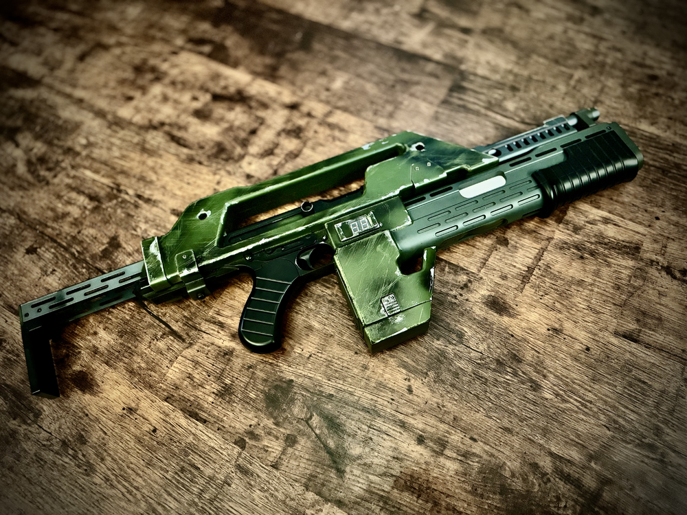 En M41A Pulse Rifle från Aliens, och det är ett fullt funktionsdugligt Airsoft-vapen till med så gjort helt i metall så jäkligt fränt!