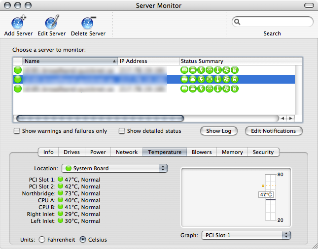 En annan smidig sak är Lights Out Management, vilket betyder att det sitter ett litet extrachip på servern som man kan snacka med även om servern är avstängd och på så sätt starta om den om något har hänt. Kan vara riktigt smidigt. Så ser man status på alla hårdvara också.