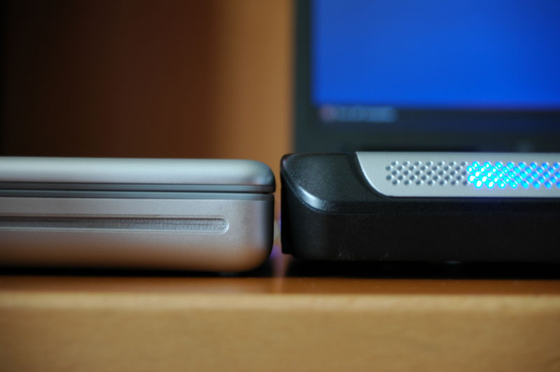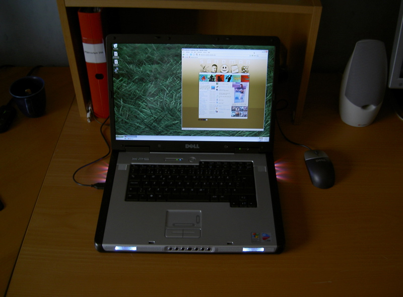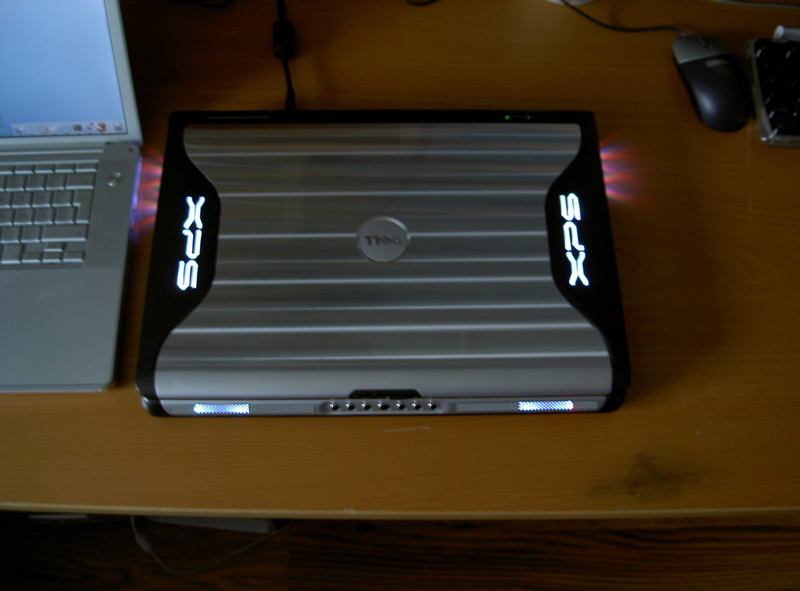 Men kolla på den här bilden. Min powerbook är alltså lika tjock som *basen* av Dell:en när powerbooken är helt stängd. Rätt så stor.