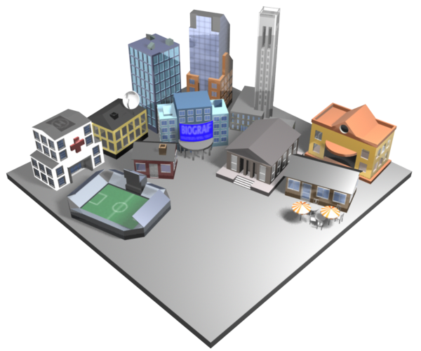 Det här är MälarNetCity-plattan som färdig illustration, med grön platta den här gången. Vi använde den här väldigt länga i många olika versioner. Den var en visualisering av "Staden i staden" som koncept där de olika delarna av staden representeras.