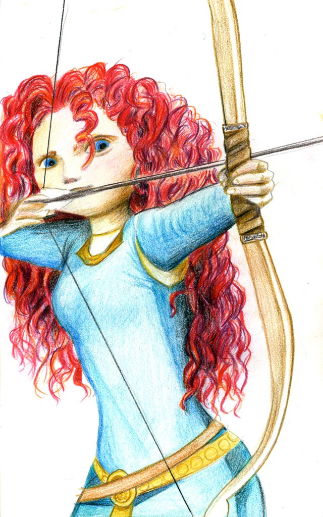 Så dagens teckning är en bild på Merida där hon gör sig redo att förudmjuka de andra som tävlar om hennes hand. Ritad med Faber Castell Polychromos-pennor, vilket är pennor jag verkligen älskar!