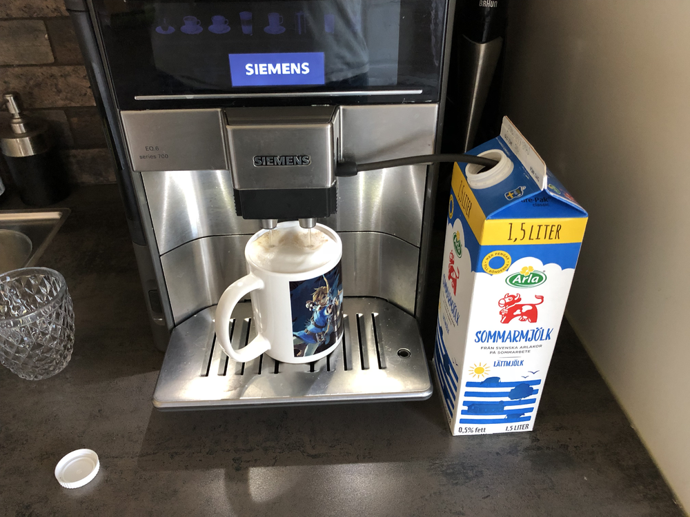 Det är en snygg maskin, inget snack om den saken. Är ju lite inställningar att göra helt enkelt. Men det blir väldigt gott och vackert kaffe så klart! Den låter lite mer än den gamla maskinen, så frågan är om man vill sätta igång den om någon ligger och sover... Morgonkaffet kanske får fortsätta med gamla maskinen