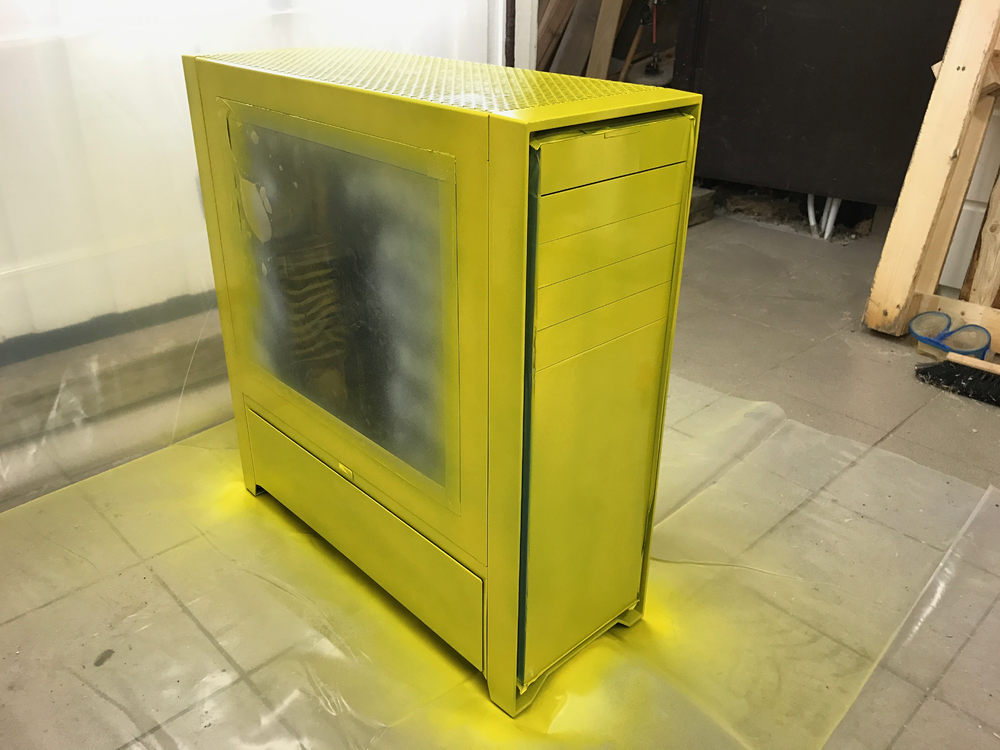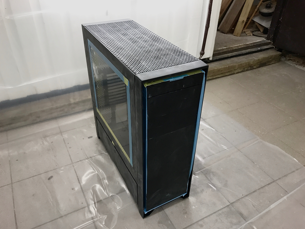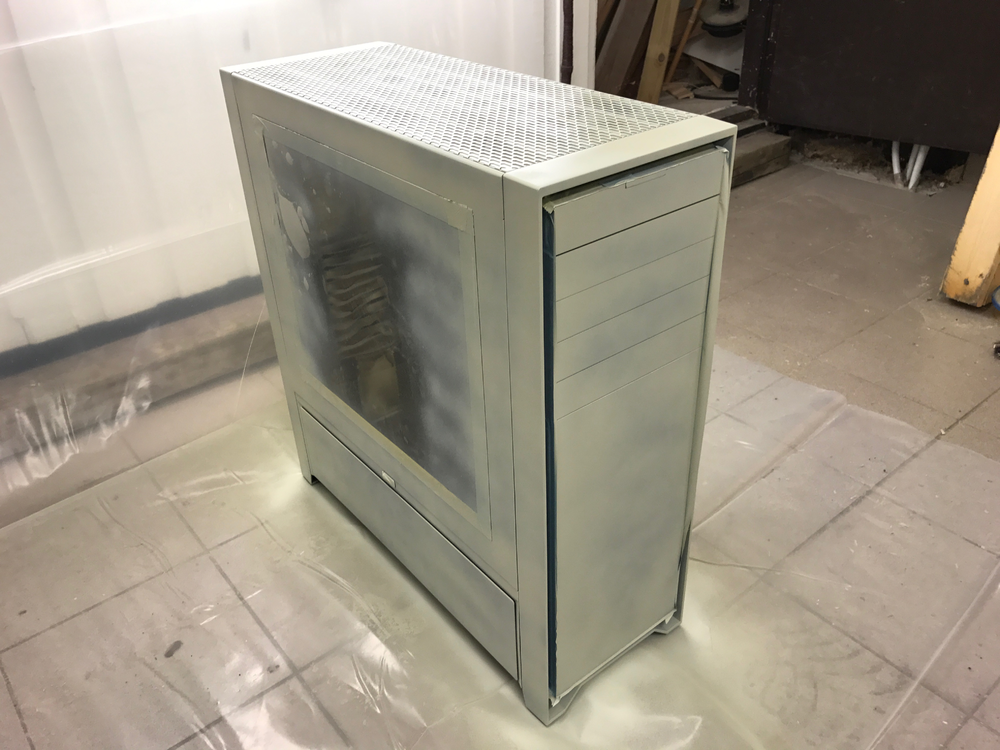 Sonen blev helt jiddrig när jag kom hem med grejerna. Och jag är i regel emot alla dessa moddar och blinkande moderkort, men jag tänkte kompromissa lite medan vi ändå väntar på vattenkylningskit:et från EKWB, så jag tänkte att vi kunde måla lådan.