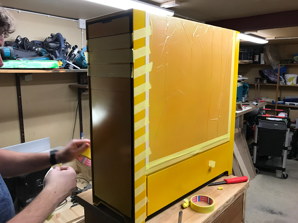 Sen första lagret av gult. Tanken är att den ska vara svart inuti, med eventuellt lite rött ljus, och sedan gul och vit utanpå. Jag såg någon Borderlands-inspirerad mod för en stund sedan och även om jag inte tänkte gå fullt ut Borderlands, så lite åt det hållet.