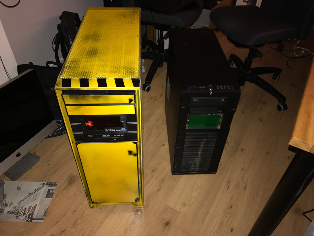 Färdigt! Här är nya lådan bredvid den gamla Fractal XL, som ser ynkligt liten ut i jämförelse
