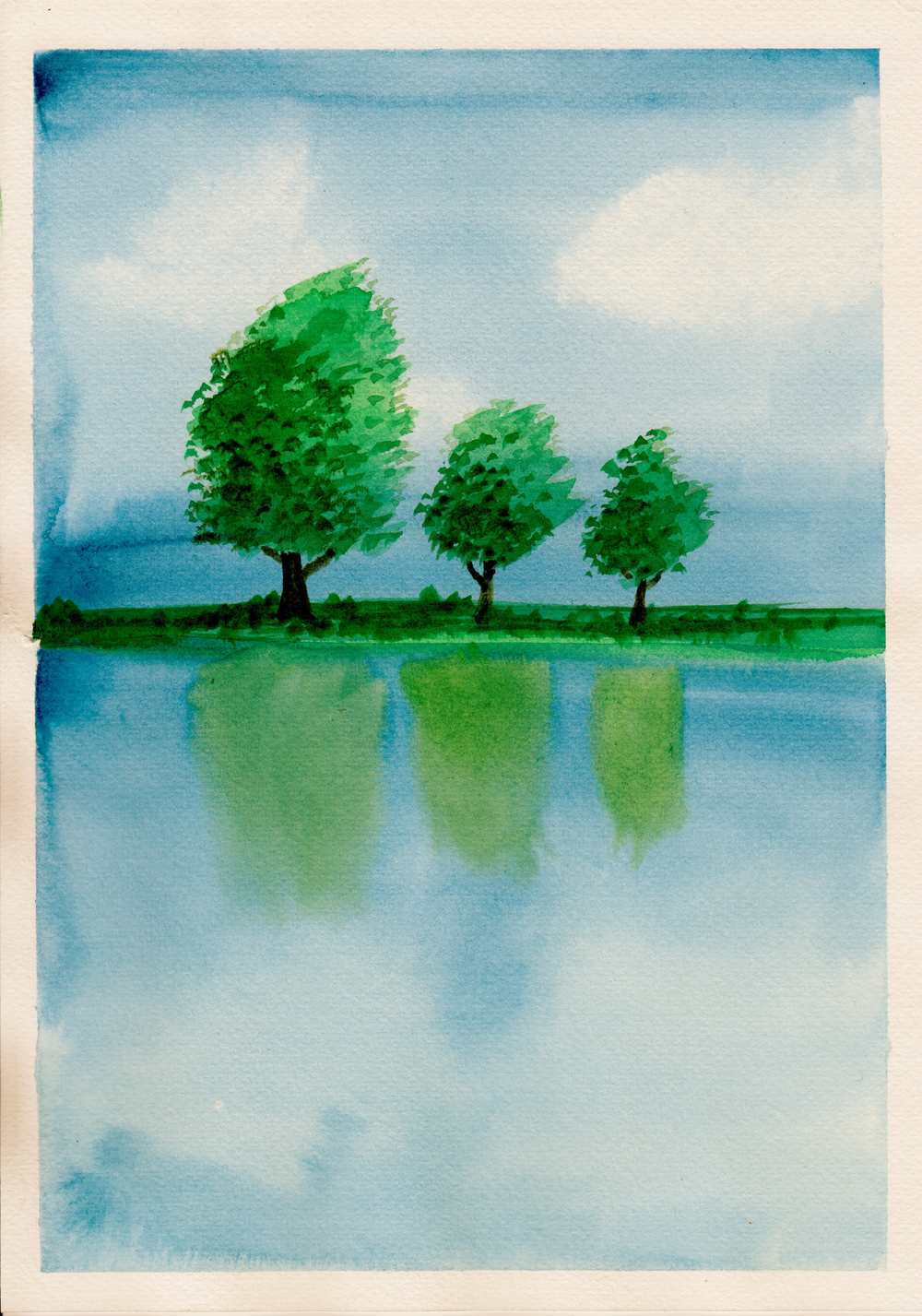 Också wet-on-wet, med mjuka reflektioner i vattnet från träden. Ser rätt så lugnt och mysigt ut, eller hur?