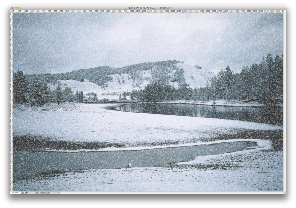 Så, låt oss säga att du har en fin bild på ett vinterlandskap, men saknar fallande snö. Så här skapar du snö i Photoshop som ser riktigt bra ut!