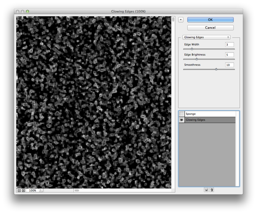 Öppna sedan Filters -> Filter gallery igen och välj Stylize -> Glowing edges i stället.