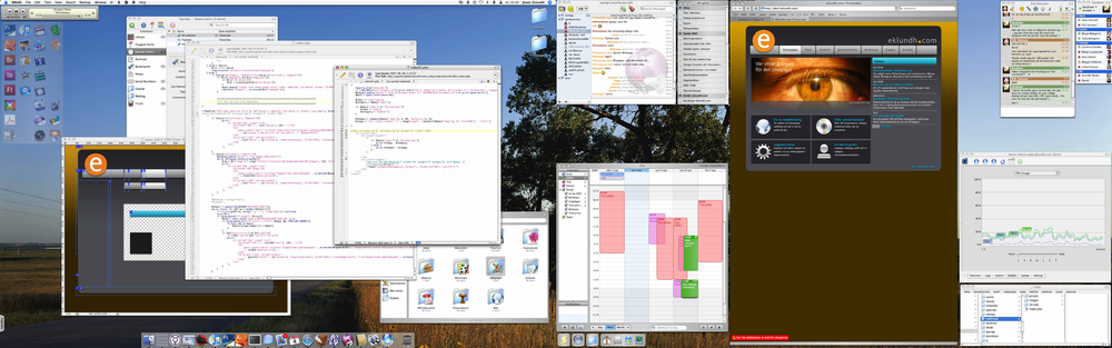 Är en person som alltid tjatar på att jag ska lägga upp en skärmdump, så jag får väl ta och göra det. Här sitter jag och pillar på en ny layout till www.eklundh.com bland annat. Som vanligt är det en väldigt stor bild (5120x1600 pixlar).