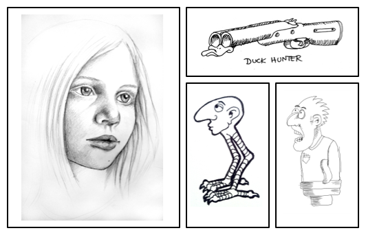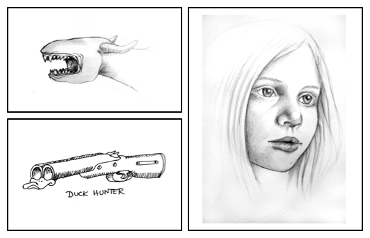 Och om detta då händer? Alltså, du får en ny skiss som är liggande. Det finns ju ingen layout som snyggt kan visa två liggande och en stående (eller hur?) så då hamnar ju Duck Hunter på vänstersidan och den nya skissen innan den. Sedan på nästa vänstersida så kommer ju resten av skisserna osv osv.
