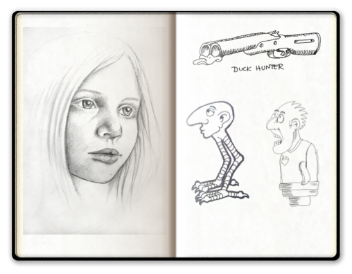 Jag har länge funderat på hur man ska lösa det tekniskt med en skissbok på min hemsida. Jag har ju redan en Portfolio och i den har jag en avdelning med Teckningar, men en skissbok skulle innehålla även småsaker som jag klottrat ihop vid något tillfälle, men som kanske inte riktigt förtjänar en plats i Portfolion.