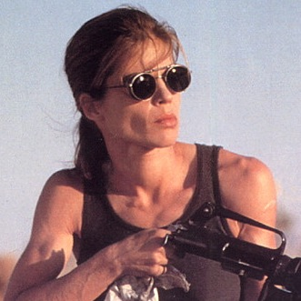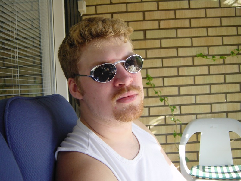 Så alltid när det är marknad så kan man hitta mig letandes bland solglasögonen förgäves efter ett par som kan tänkas passa, men jag hittar aldrig några. Mina absoluta favoritsolglasögon köpte jag i Thailand. Dom tyckte jag oerhört mycket om, men eftersom dom förmodligen var konstruerade av något med samma hållbarhet som frigolit så höll dom inte länge, tyvärr. Det är dom ni ser på bilden här till höger. Dom var liksom inte helt runda men åt det runda hållet. Märka med krom-ram och med ett litet "skydd" på sidorna, eller vad man ska kalla det. Dom påminner lite grann om de solglasögon som Linda Hamilton har på sig när hon ger sig iväg för att mörda Myles Davis i Terminator 2. Det är precis sådana solglasögon som hon hade som jag skulle vilja ha. Klurigt!