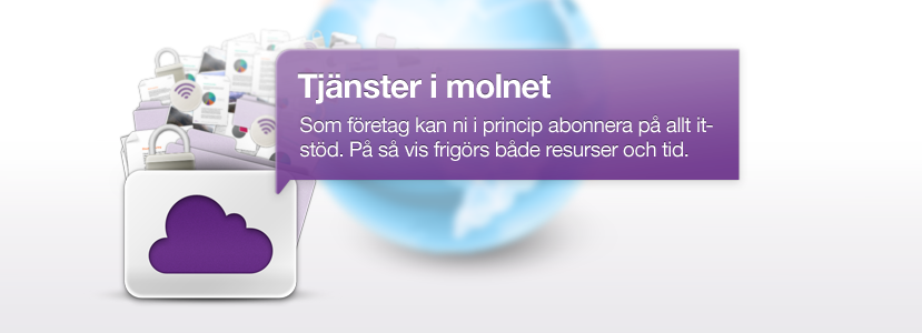 Det Telia vill visa med bilden är ju deras molntjänster. Men det är lite klumpigt gjort. Dom har en platta som det liksom "sprutar upp" saker bakom. Många av de ikoner bakom plattan är samma och dom försvinner liksom bort i fjärran mot en jordglob. Egentligen vill jag inte kritisera hur dom har löst symboliken, utan tänker mest på hur jag skulle ha gjort det.