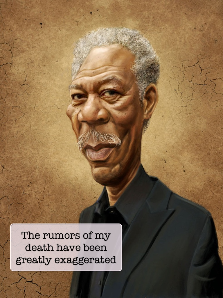 I morse gick ett rykte om att Morgan Freeman var död på Twitter och Facebook. Många blev väldigt upprörda över att denna legend hade gått ur tiden. Det visade sig dock att när man grävde lite djupare i detta så var det en bluff. En twitteranvändare hade postat ett inlägg som såg ut som ett CNN-citat, som då skickades vidare och vips så trodde halva världen att Morgan Freeman var död.