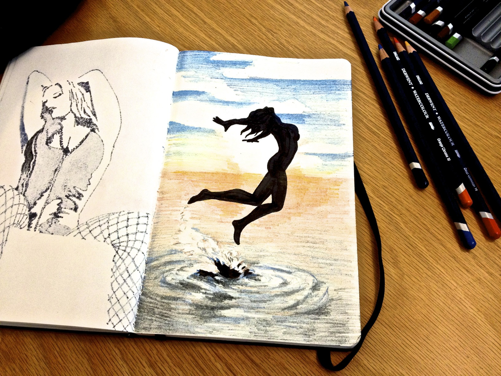 Dagens teckning är på en flicka som är på väg ned.. eller upp ur vattnet, vem vet? Hon kanske bara inte gillar hela grejen med gravitation!