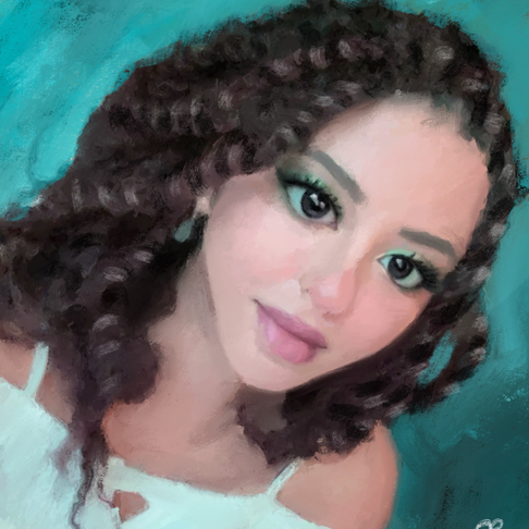 Målad i ArtRage på iPad:en, en tjej med blött hår som chillar lite.