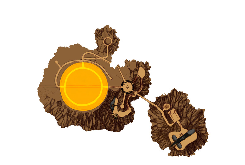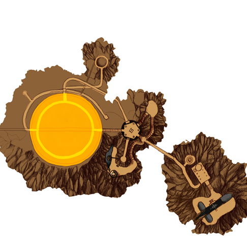 The entire outline of the island is there now, but the terrain shading isn't done yet. The paths are laid out but not finished. I'm fairly pleased with the color palette so far. Looks earthy and "old" if you like.
