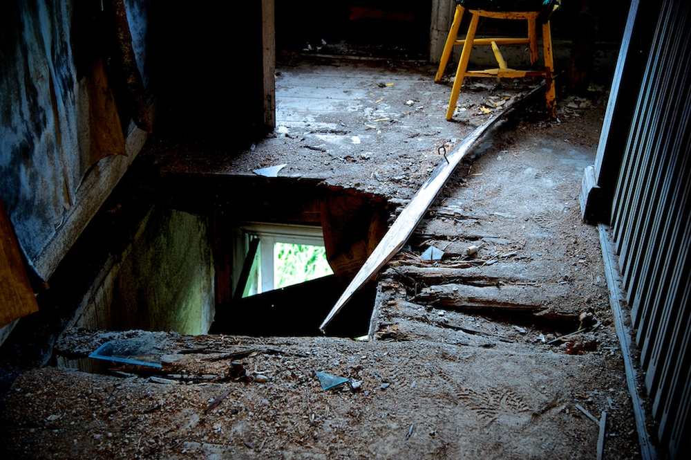Decennier av förfall har fått golvet att rasa igenom från övervåningen