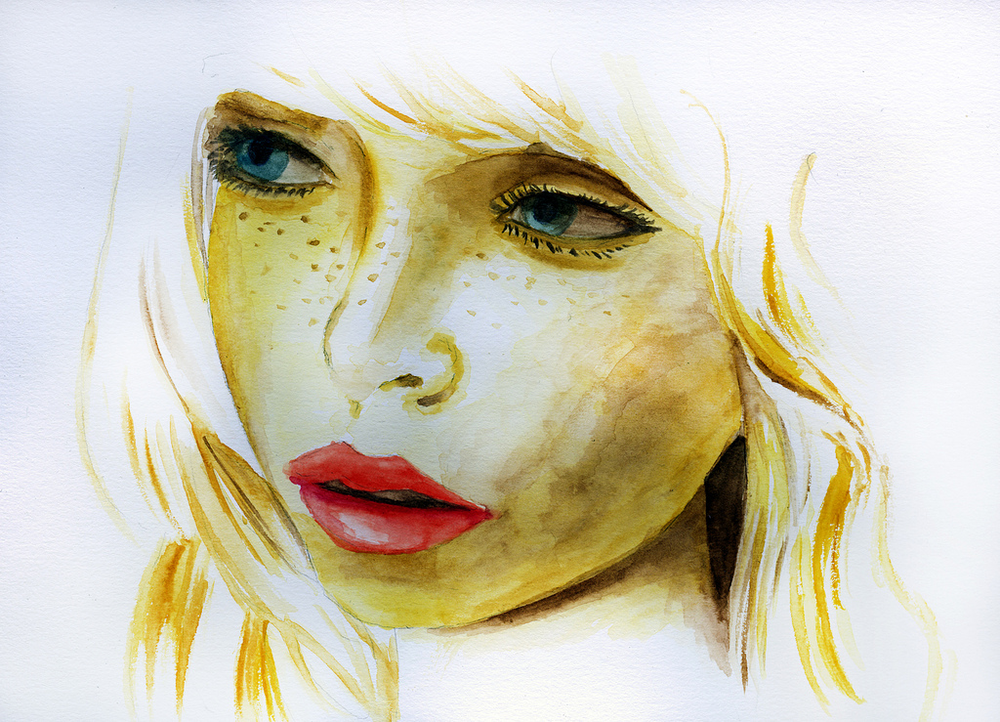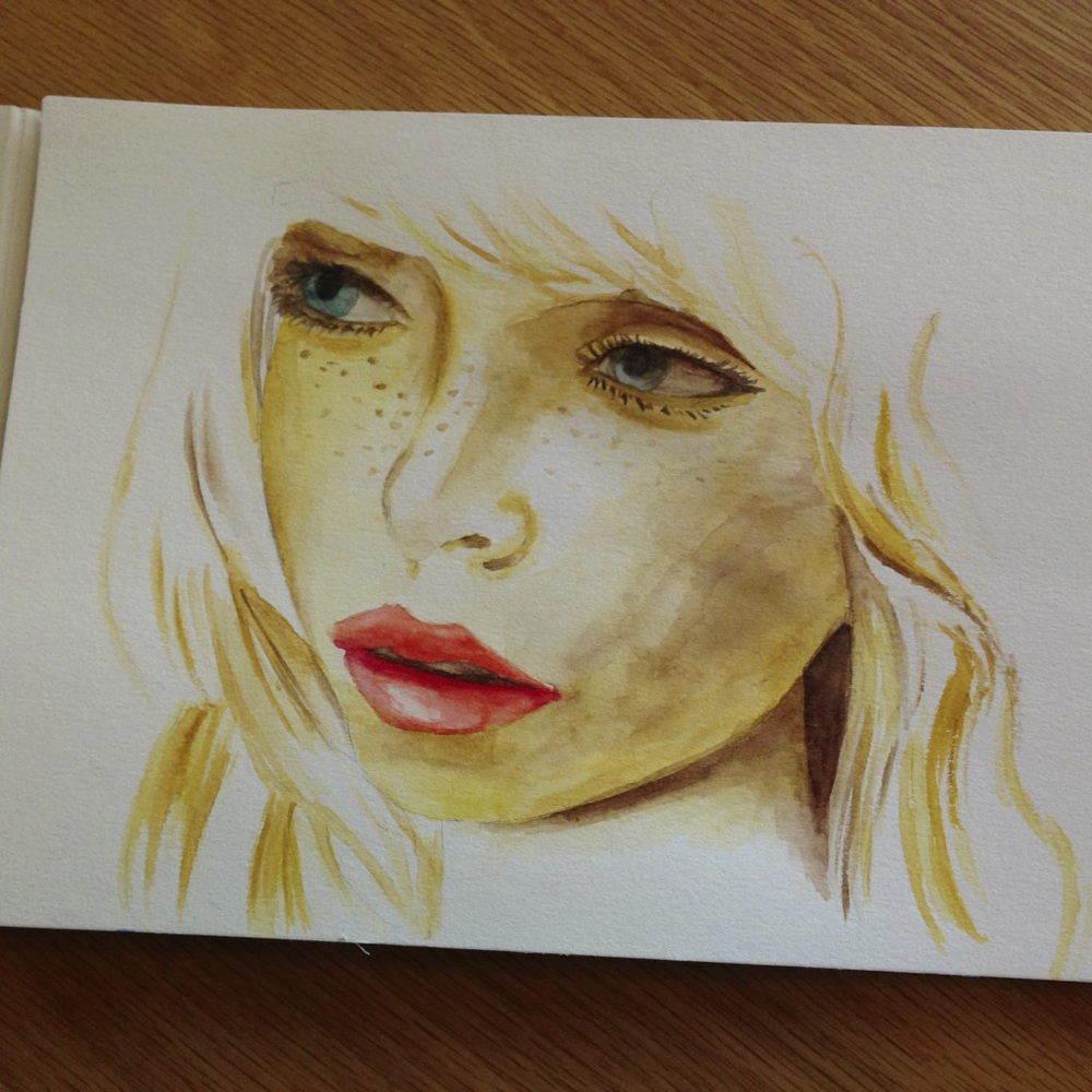 Aquarelleteckning på en blond tjej från en bild jag hittade online.