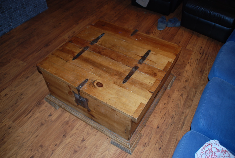 Tina vill att vi ska ha ett nytt soffbord, men jag är inte så säker på det... Det vi har är ett skitsnyggt kistbord som vi har haft sen vi träffades nästan. Det är liksom "vi" på något sätt. Det passar oss och har alltid varit med. Det är opraktiskt som tusan, man kan ju inte ta ut saker ur det när det står saker på det, skitsmart! Sen kan man ju inte dammsuga under det, utan får lov att dra hela åbäket åt sidan för att kunna komma åt allt skit som samlas under bordet.