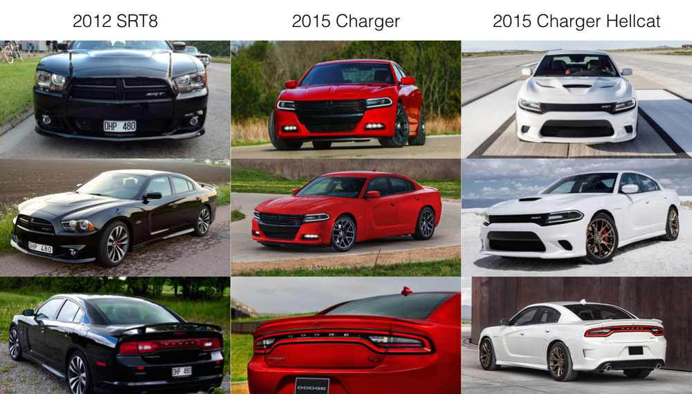 Men som ni ser så ser den inte mycket bättre ut än den vanliga Chargern. Här är lite jämförelse mellan min, den vanliga 2015-chargern och sedan Hellcat-versionen.