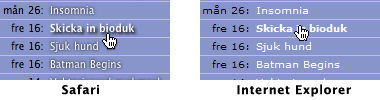 Internet Explorer stöder tyvärr inte CSS attributet "text-shadow", vilket är lite synd. Här är ett exempel på hur tidigare-bloggar listan på sandman.net ser ut i Safari och i Explorer. Det ser nog lite skojigare ut i Safari va?