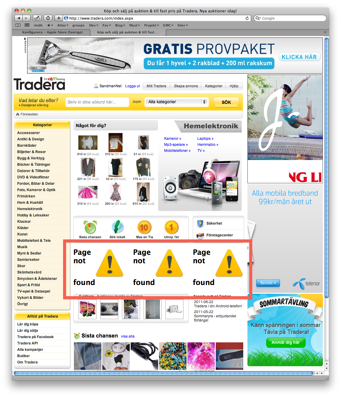 It's not unusual that someone copies something design-wise from sandman.net, but this is the first time I've seen a big company like eBay do it. So, what's all this about? Well, when I visited tradera.se (which is owned by eBay), I saw this: