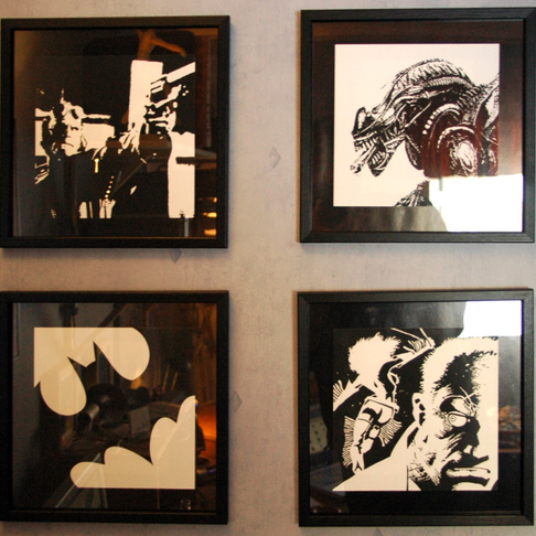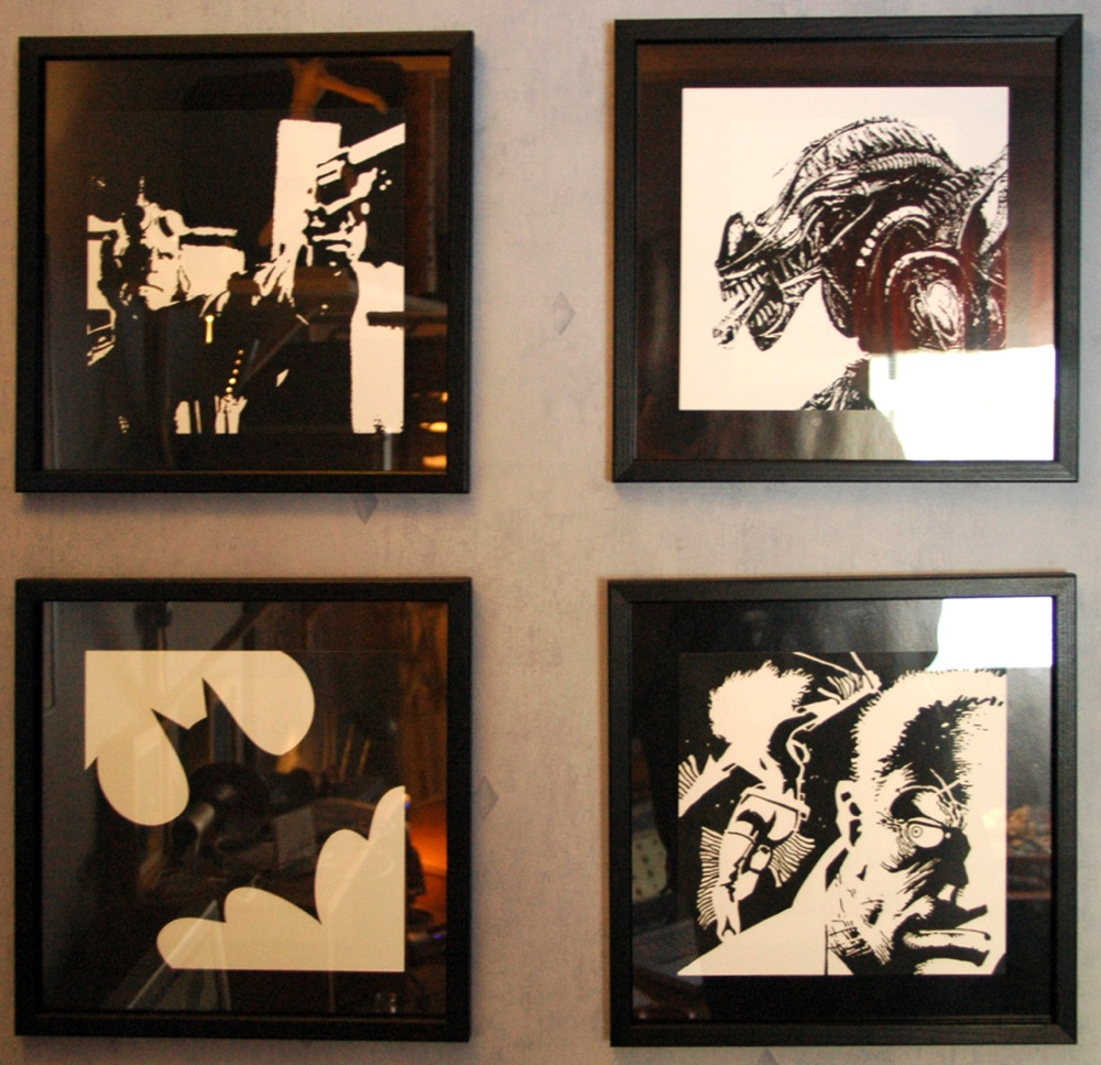 Dom är egentligen bara foton donade med i Illustrator och PhotoShop och uppsatta bredvid min "filmsamlarhylla" för att det passar fint där. Lägger upp dem här för det är ju i alla fall en gnutta kreativt arbete inblandat. smile