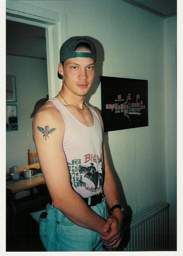 En annan motivation jag har är bilder på mig själv från min ungdom. När jag var 18-19 år så var jag mycket smalare som du kan se på bilden här. Jag menar inte att jag ska vara så där spinkig, jag är ju trots allt rätt så stark också så helst vill jag ju inte förlora för mycket muskelmassa. Med tyngdlyftning så borde man ju undvika det förstås. Sen var jag ju faktiskt rökare på den tiden med, vilket ökar ämnesomsättningen.