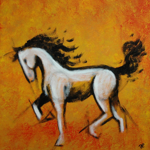 Första hästen i hästkollaget, som Tina ville ha över soffan i vardagsrummet, där vi saknat en tavla rätt länge.