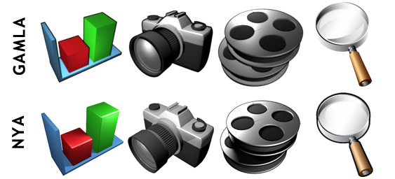 Jag har länge hållit på med att göra ikoner med hjälp av 3D-program, för att få lite extra snygga ikoner. Har precis satt mig ned och förnyat en del och gjort en hel del nya. Med hjälp av Raytracing så kan man få så fina skuggor och reflektioner så det är otroligt.