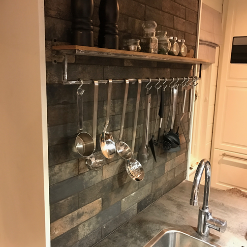 Vi har alla våra knivar i en enda röra i en låda, men Tinas far skickade iväg dem för att bli slipade och efter det får vi inte ens köra dem i diskmaskinen, och då känns det ju rätt dumt att ha dem ligga i en hög i en låda med. Så vi kollade på sådana där knivställ på Cervera men dom var så väldigt dyra, så jag byggde en egen av en ekskiva jag hade hemma redan, samt köpte lite grillspett på Citygross som var superbilligt.
