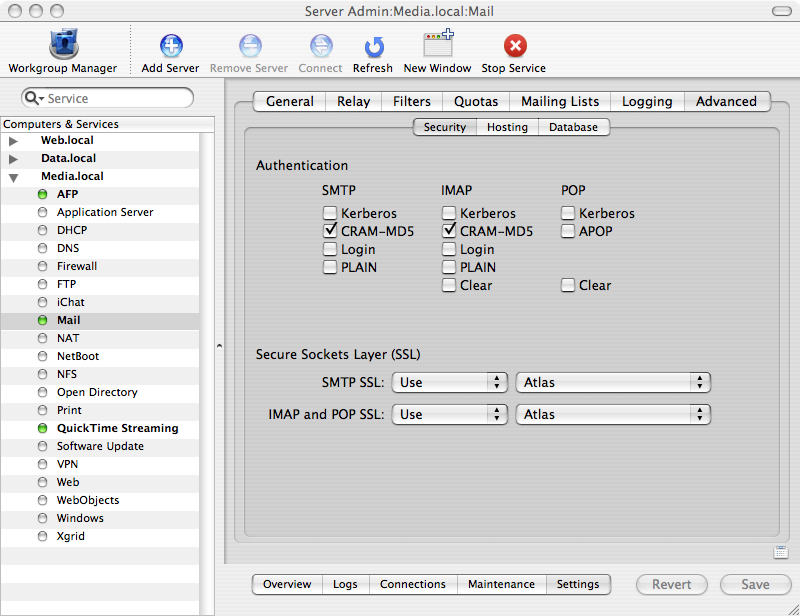 Att flytta över allt till Mac-miljö är nog inte alltför enkelt. En del saker är ju dock riktigt smidigt, som till exempel server admin-verktygen. Att sätta upp en SMTP/IMAP-server med MD%-inloggning och SSL är busenkelt. Sen att flytta alla mail från Linux-lösningen till Apples Mailserver är ju en annan sak. Vi får se hur det går.