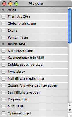 Sen har jag ju en projektrums-modul i Atlas som jag aktiverar p mina kunders hemsidor och där kan dom lägga upp Att Göra åt mig, som jag får upp samlat i ett eget fönster. Men det är en helt annan process. Fördelen med den är att kunden får ett mail så fort jag markerar något som avklarat