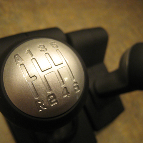 Kom att tänka på det när jag inser att jag verkligen skulle vilja ha manuell låda ibland i min bil, vilket inte är så konstigt med tanke på vilken motor som sitter i. Tänk er då en växelspak som ser ut som på bilden, och så har du bakväxel nedåt och till vänster, men upptå och till vänster så har du automatläger. Så länge spaken är i det läget så är det som vilken automatlåda som helst.